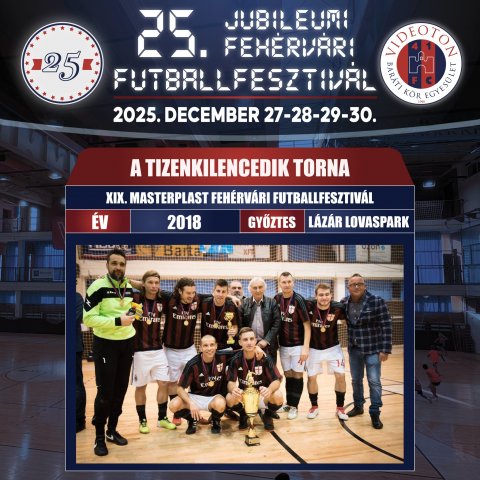 A XIX. MASTERPLAST VIDEOTON FCF Baráti Kör Egyesület Fehérvári Kispályás Ünnepi Futball-fesztiválra állandósult a nagyszabású program, hiszen ismét volt Masterplast Öregfiúk Kupa, RBD Szurkolói Kupa, női kupa, gyermek kupa (U11), Botos István emlékmérkőzés (a VIDEOTON BKE és a DUNAFÉM-MAROSHEGY U13-as csapatai között) és közéleti gálamérkőzés. A bajnok, s ezáltal az aktuális címvédő a Lázár Lovasapark lett, megelőzve a Boiron Homeopátia csapatát. A kisdöntőt a Karmacsi Autó nyerte meg a Jóbarátok ellen. ![]() 2019 – XX. Masterplast Fehérvári Futballfesztivál